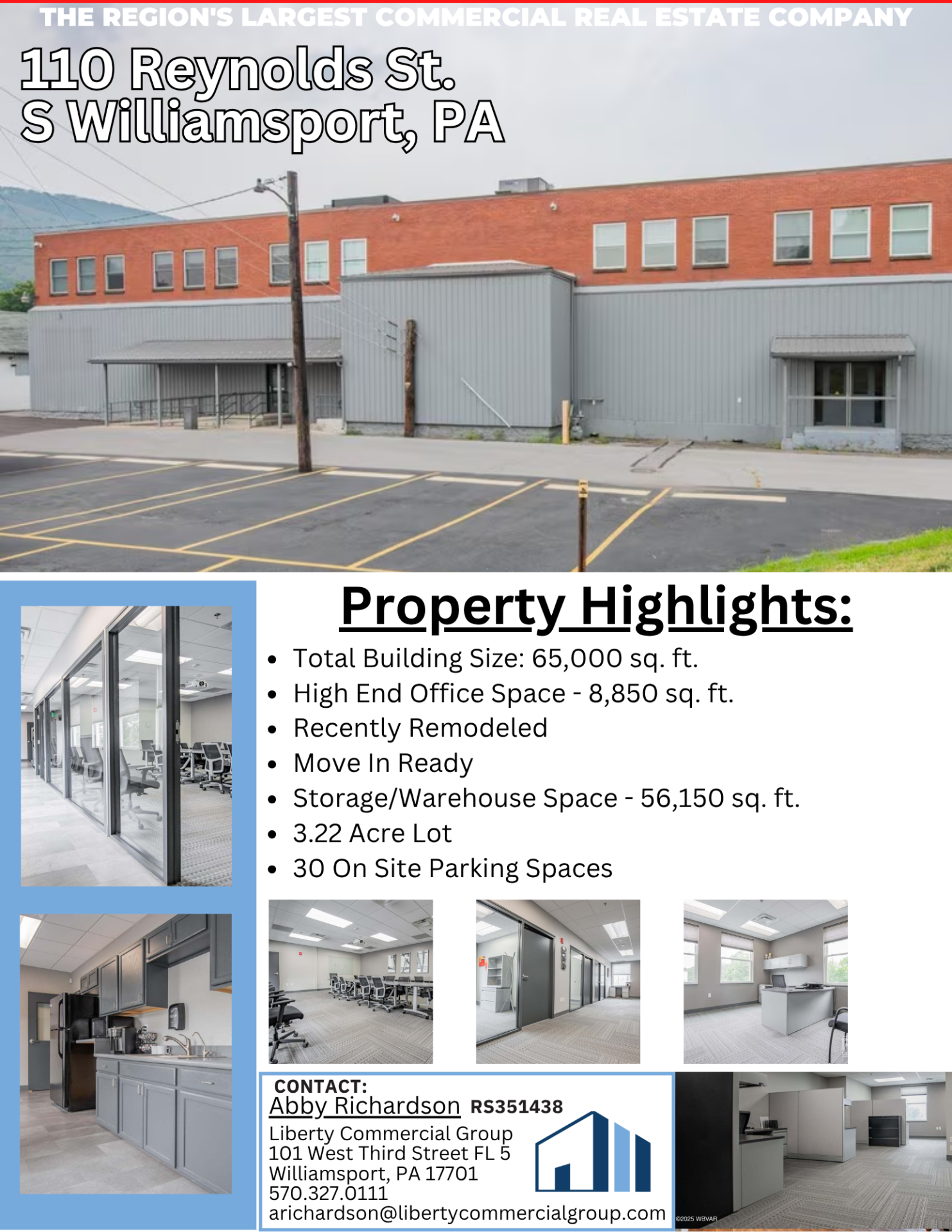 Total Building Size: 65,000 sq. ft. High-End Office Space: 8,850 sq. ft., recently remodeled and move-in ready Storage/Warehouse Space: 56,150 sq. ft. Lot Size: 3.22 acres Parking: 30 on-site spaces This property is ideal for businesses seeking a combination of professional office space and ample storage or warehouse facilities. Don’t miss this opportunity!AVAILABLE SPACE(S):